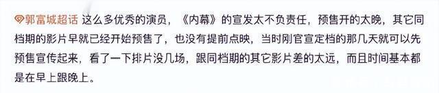 再者是阛阓竞争阴毒,《内幕》上映恰逢劲敌环伺,前有《豪恣动物城2》《得闲谨制》占据广泛排片,后有《赛德克·巴莱》《阿凡达3》强势来袭,上映首日排片占比不到5%,根柢莫得喘气的契机。